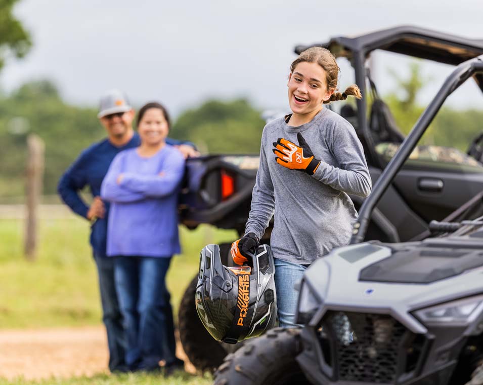 Con motor EFI de 180 cc, asiento y volante ajustables, asientos para pasajeros y accesorios, permiten a los conductores más jóvenes crecer uno al lado del otro. Para conductores mayores de 10 años.
